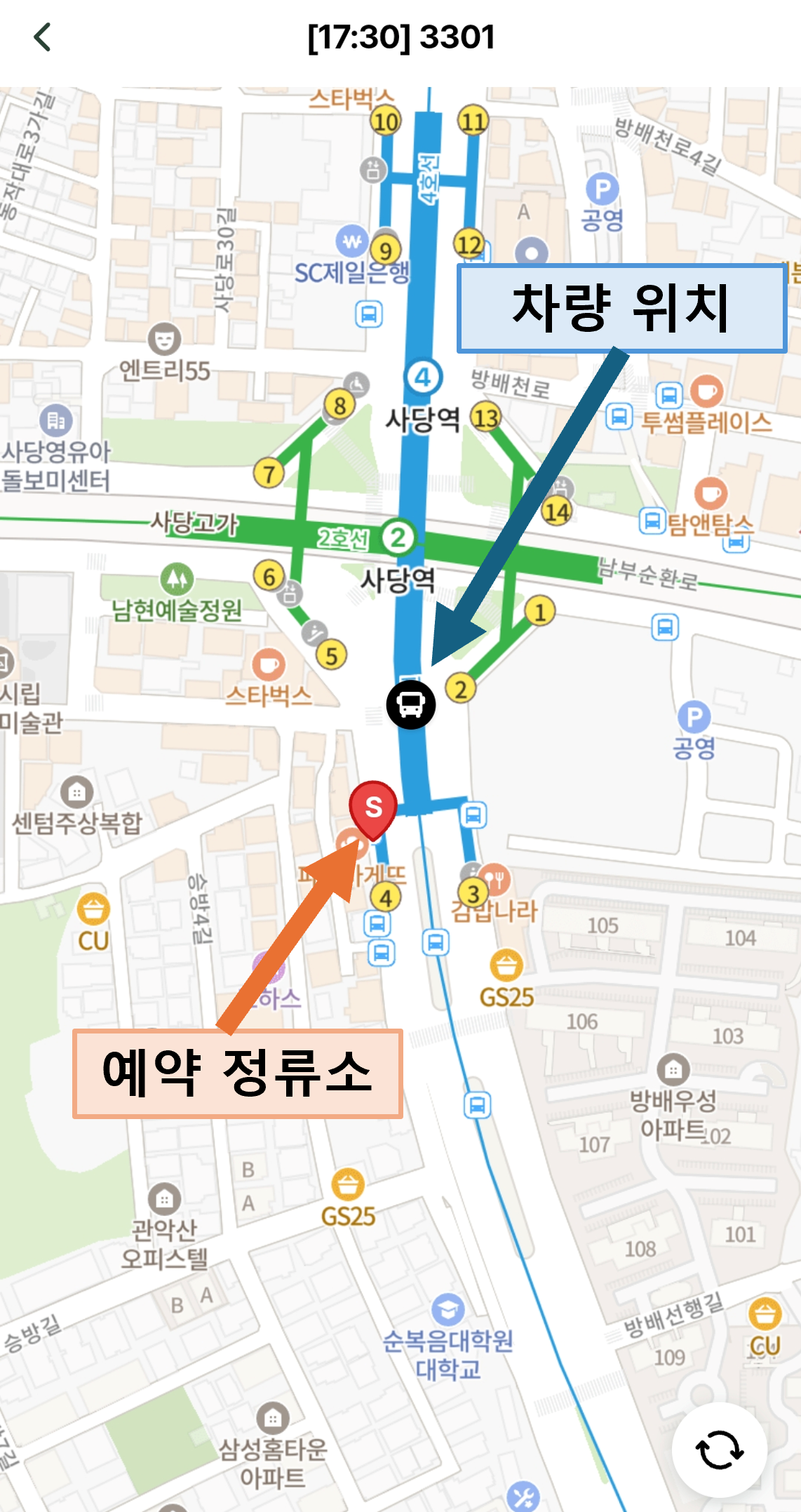 - 정해진 시간, 지정된 정류소에서 예약된 좌석에 바로 탑승