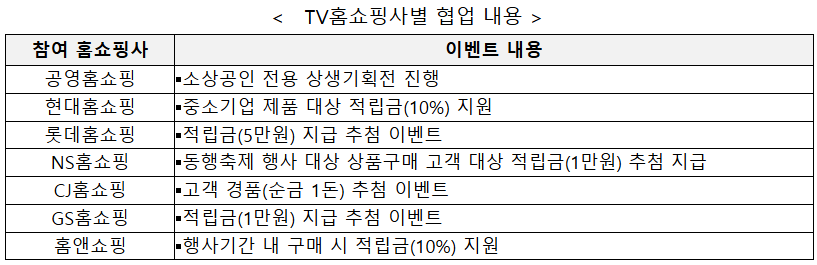 - 홈쇼핑 상생기획전, 배달앱 할인쿠폰 등 다양한 소비자 이벤트 동시 진행