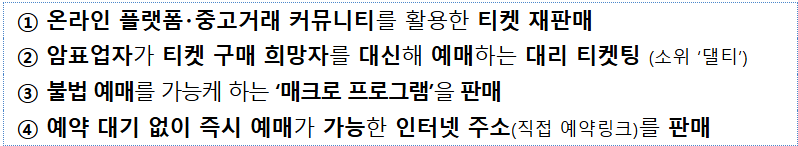 - 아르바이트 동원을 통한 대량 암표 매입